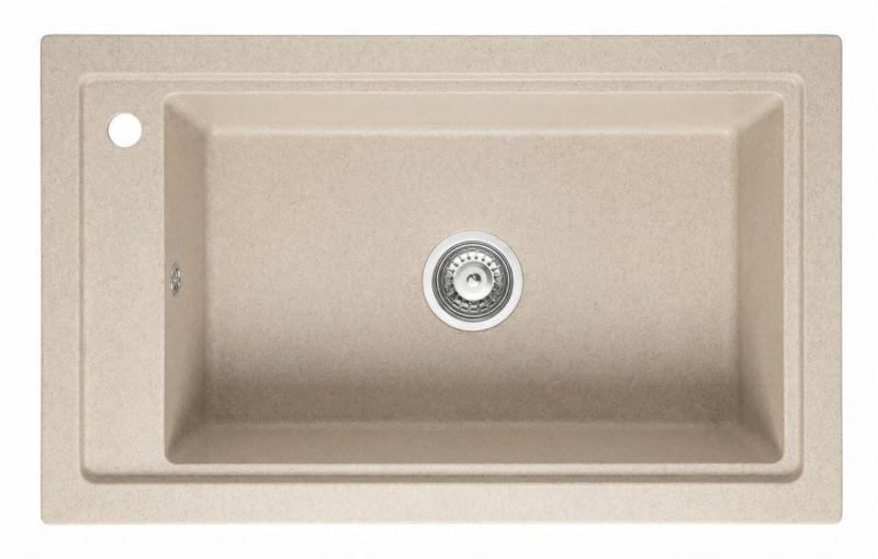 Graniteland Magra Granit Beige Sand Aufbauspüle 686 x 427 mm mit Hahnlöcher und Edelstahl-Stecker 1208970617