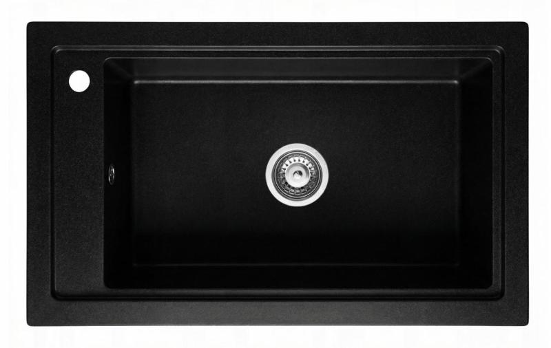 Graniteland Magra Granit Schwarz Spüle Aufbau 686 x 427 mm mit Hahnlochbank und Edelstahl Stecker 1208970616