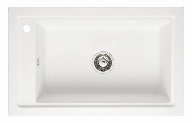 Graniteland Magra Granit Weiße Einbauwaschbecken 686 x 427 mm mit Hahnlöcherbank und Edelstahlstöpsel 1208970614