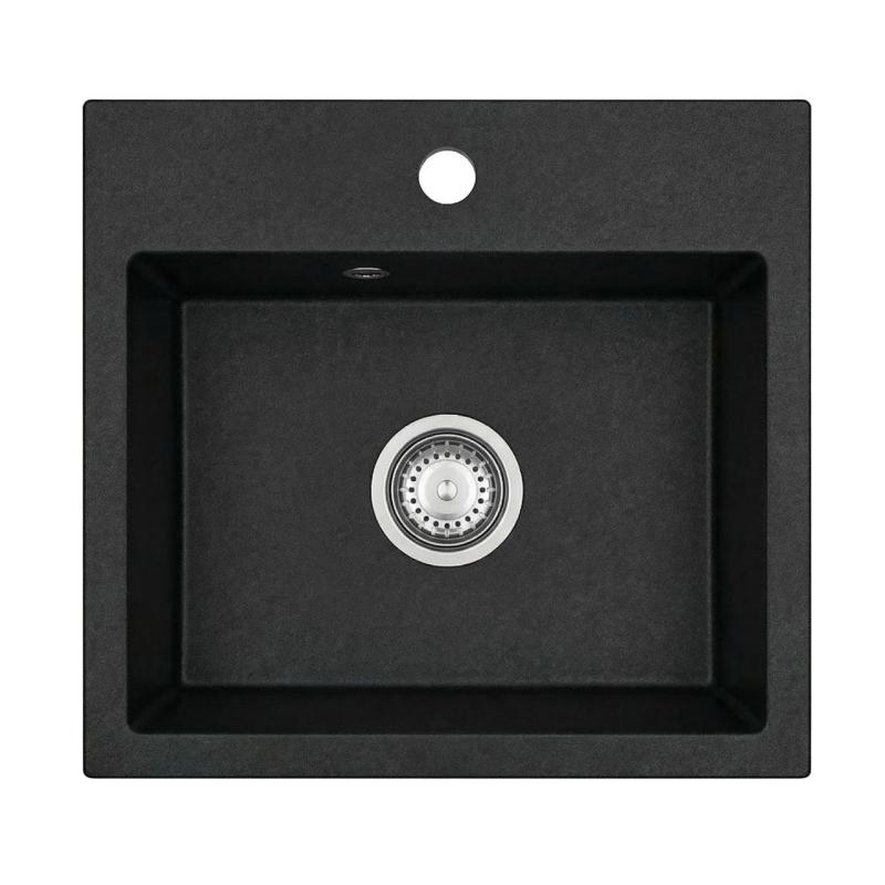 Graniteland Nera Granite Sink 45x42 cm Black Surface-mounted with Tap Hole Deck and Stainless Steel Plug 1208969985