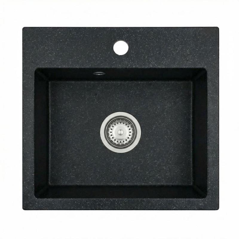 Graniteland Nera Granite Sink 45x42 cm Bluestone hard stone look Top mounted with Tap hole bank and Stainless Steel Plug 1208971432