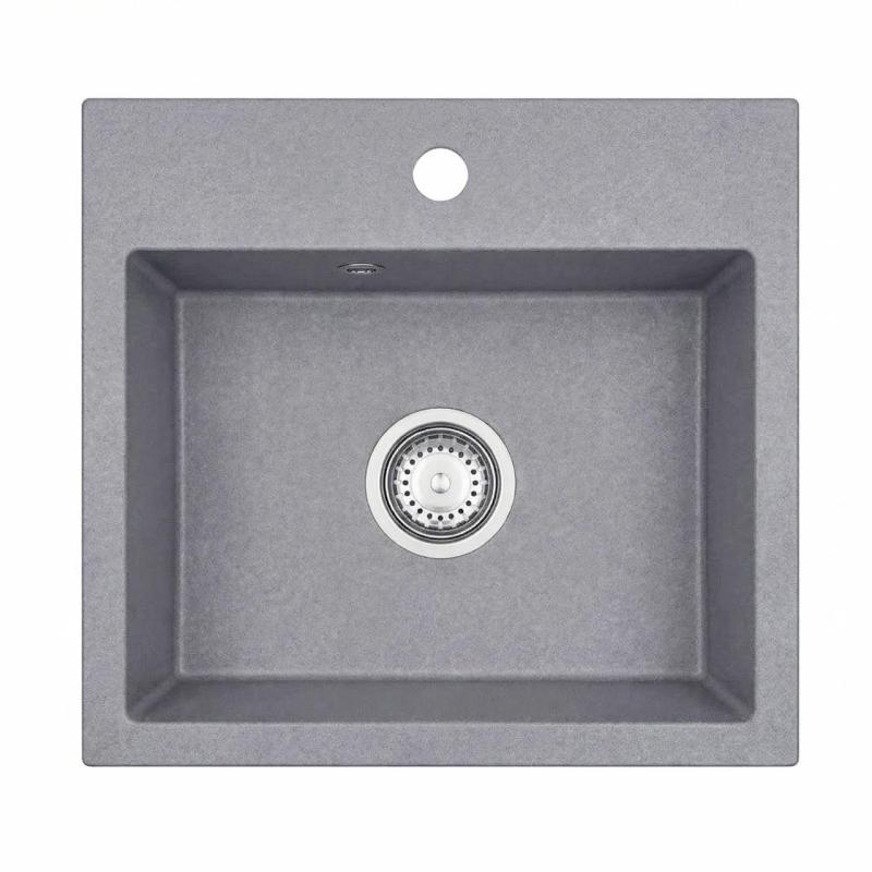 Graniteland Nera Granite Sink 45x42 cm Grey Built-in with Faucet Hole and Stainless Steel Plug 1208971436