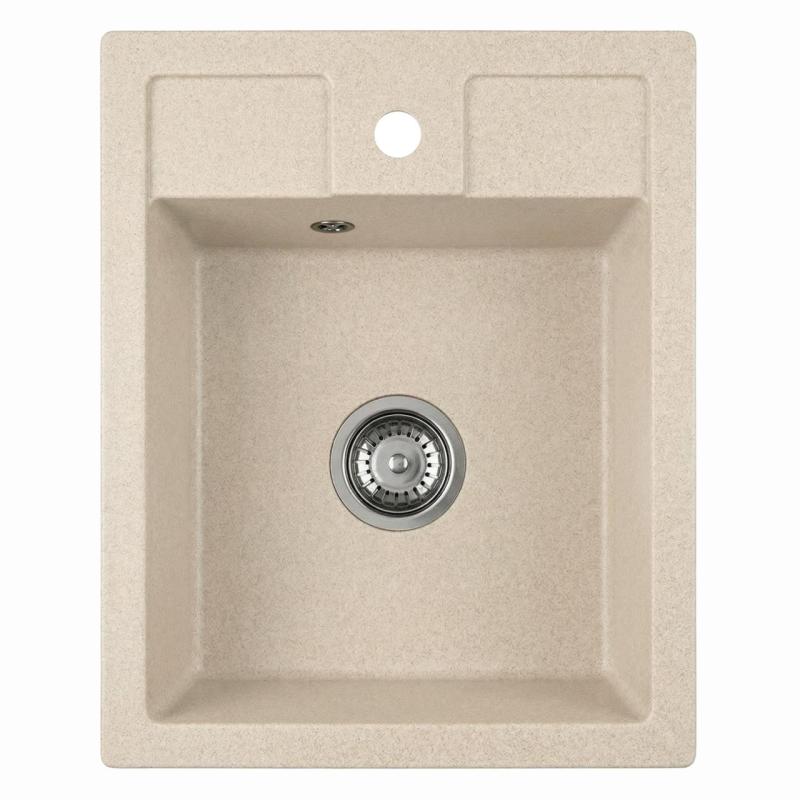 Graniteland Prest Granit beige Spülbecken Tapwing mit Armaturenlochbank Aufbau 400x500mm mit Edelstahl-Stopfen 1208971422