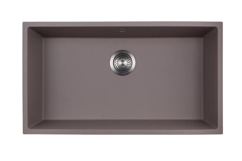 GraniteMy Universal Großes Spülbecken aus taupefarbenem Granit, 74 x 40 cm, für Aufsatz-, Unterbau- und Flachmontage, mit Edelstahl-Ablaufstopfen 1208972249