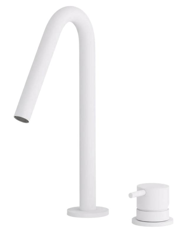Waterevolution Flow 2-Loch-Waschtischarmatur mattweiß mit kleinem V 120 mm Auslauf T1121VBR