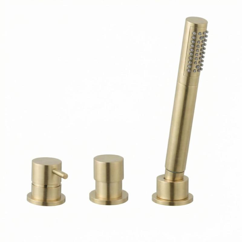 Waterevolution Flow 3-Loch-Wannenbatterie für Wannenrandmontage PVD Gebürstetes Hellgold T138WGE